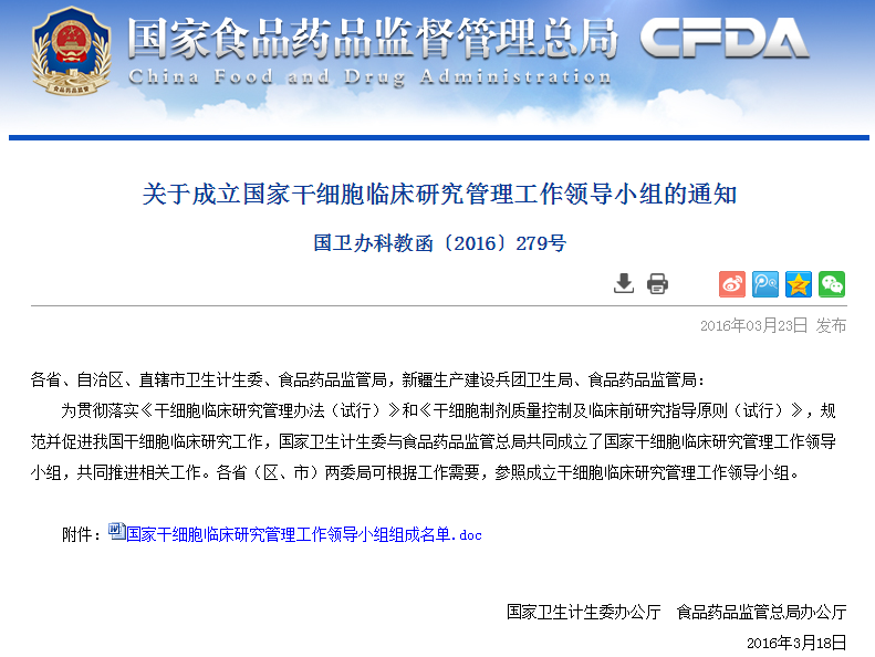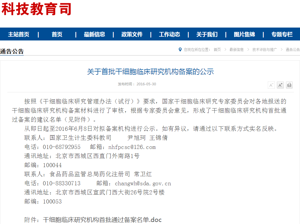 按照《干細胞臨床研究管理辦法(試行)》要求,國家干細胞臨床研究專家委員會對各地報送的干細胞臨床研究機構備案材料進行了審核,根據(jù)專家委員會意見,形成了干細胞臨床研究機構首批通過備案的建議名單(見附件)。 從即日起至2016年6月8日對擬備案機構進…